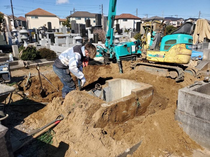 home誠石材 まこせきブログ〜石屋の日常〜 墓所解体&新規建墓★ 墓所解体&新規建墓★ 2023.2.24 皆様ごきげんよう★ 今日はお客様墓所の新規建墓工事のお話!! 今すでにあるお墓を壊し更地にし、新しくお墓を建てるご依頼を頂きました♡ありがとうございます(人*´∀`)。*゚+ 今回はとても良い大きなお墓のため大変そう( ;∀;) その分立派なお墓になるのかなぁと、期待が高まります★マチガイナイ! 新着記事 keyboard_arrow_right 卒業おめでとうございます! keyboard_arrow_right 色んないろがありますよ! keyboard_arrow_right 残り僅かですよ!急げ急げ! keyboard_arrow_right 香水みたいなお線香 アーカイブ keyboard_arrow_right 2025年3月} keyboard_arrow_right 2025年2月} keyboard_arrow_right 2025年1月} keyboard_arrow_right 2024年12月} ご相談・お見積りは無料です 墓石の種類、工事内容やお見積もりの流れなど、お気軽にお問い合わせ下さい。 047-330-8678 [受付時間] 9:00〜18:00 ※FAX:047-325-9091 ※FAX:047-325-9091 email メールでお問い合わせ 24時間受付しております